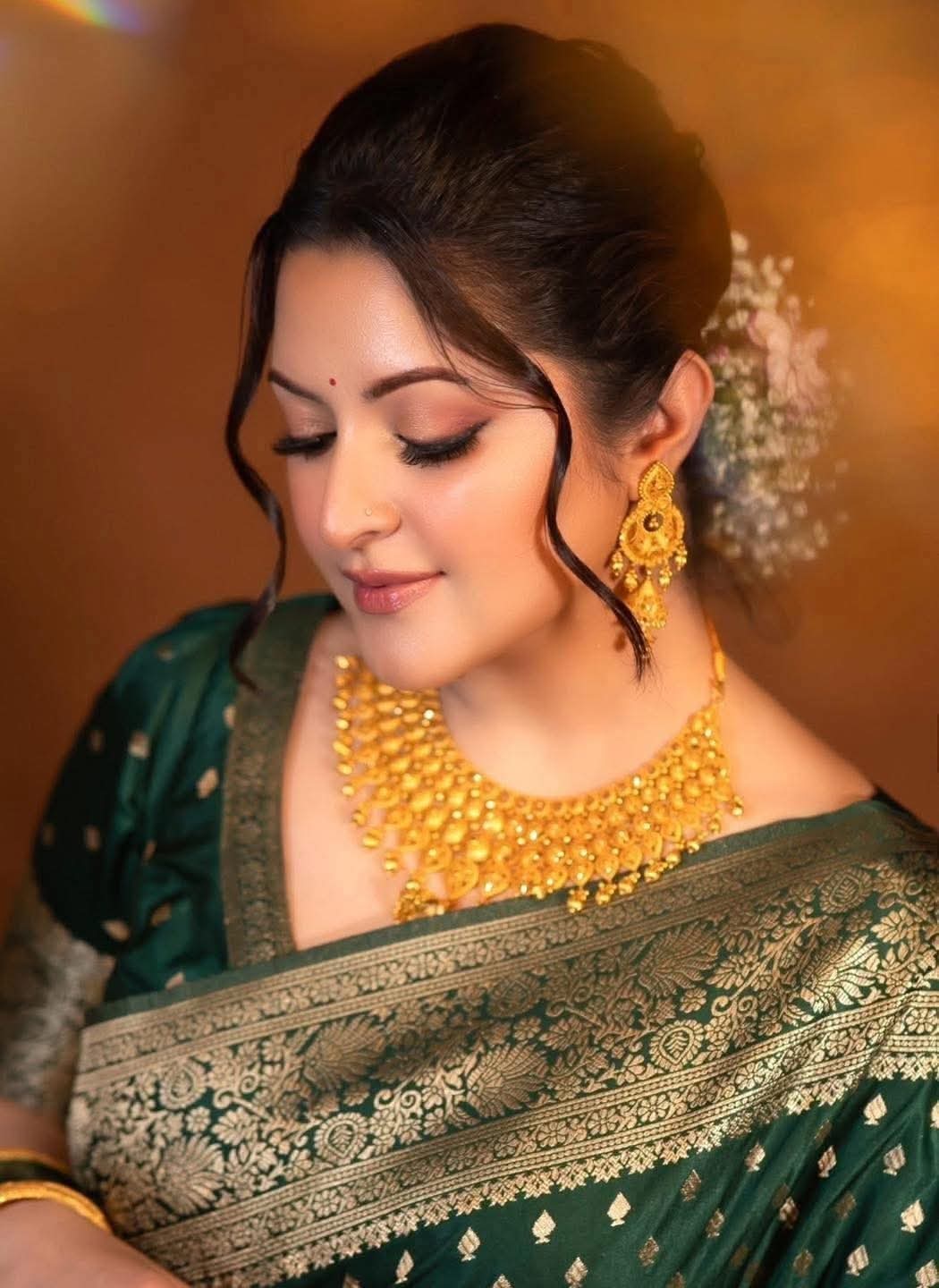 👑 এক্সক্লুসিভ অরজিনাল বেনারসি সিল্ক কাতান শাড়ি।ব্লাউজ পিস আলাদাভাবে দেওয়া আছে।